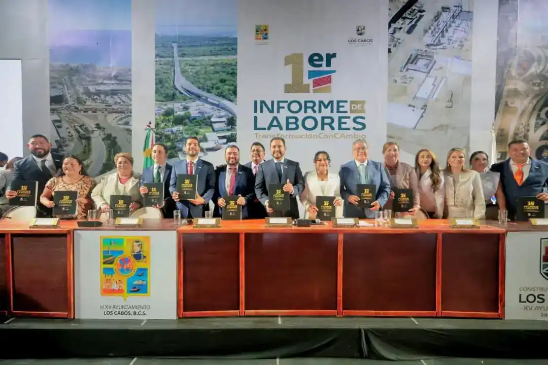 Los Cabos, Baja California Sur.– Con la convocatoria a continuar unidos en la transformación de Los Cabos el presidente municipal, Christian Agúndez Gómez destacó en su mensaje del Primer Informe de Labores la obra pública, los apoyos asistenciales y el constante respaldo de la presidenta Claudia Sheainbaum Pardo, así como el gobernador Víctor Castro Cosío además destacó los resultado en materia de obra pública, inclusión social, seguridad y la reafirmación en el ámbito turístico del destino.